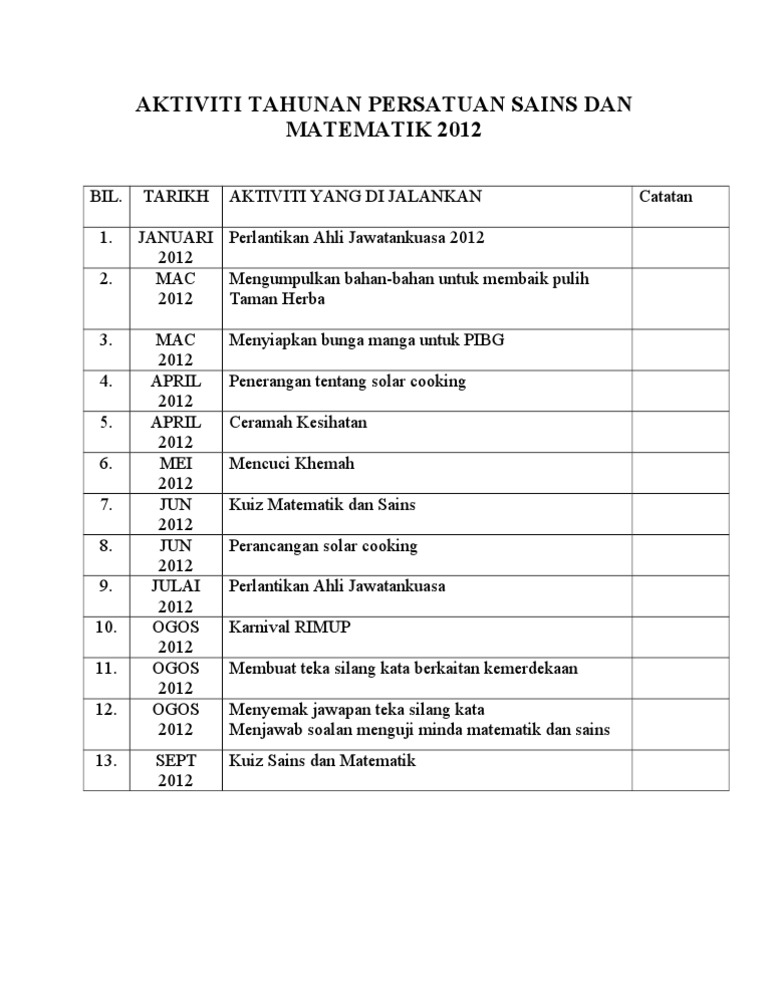 Rancangan Aktiviti Tahunan Persatuan Sains Matematik Tahun 2020 Pdf